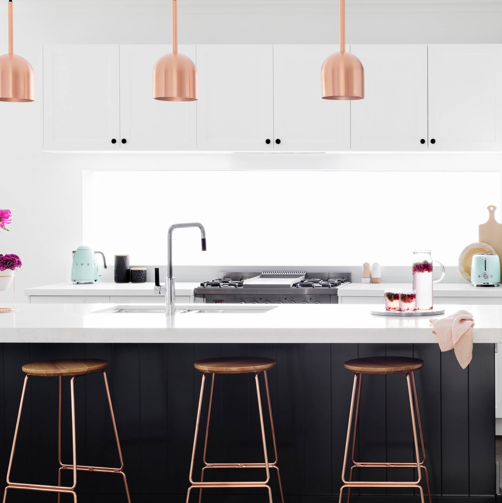 Layout : I shaped shaker white solid wood kitchen cabinet with black island
