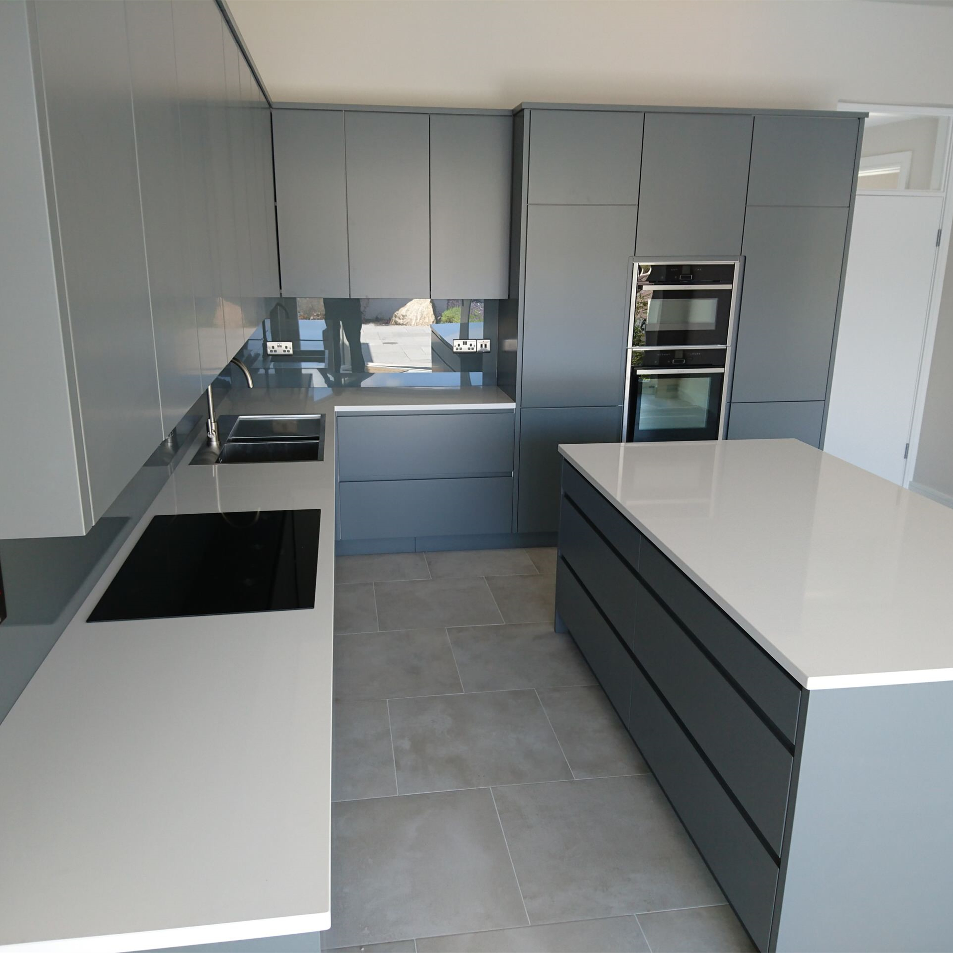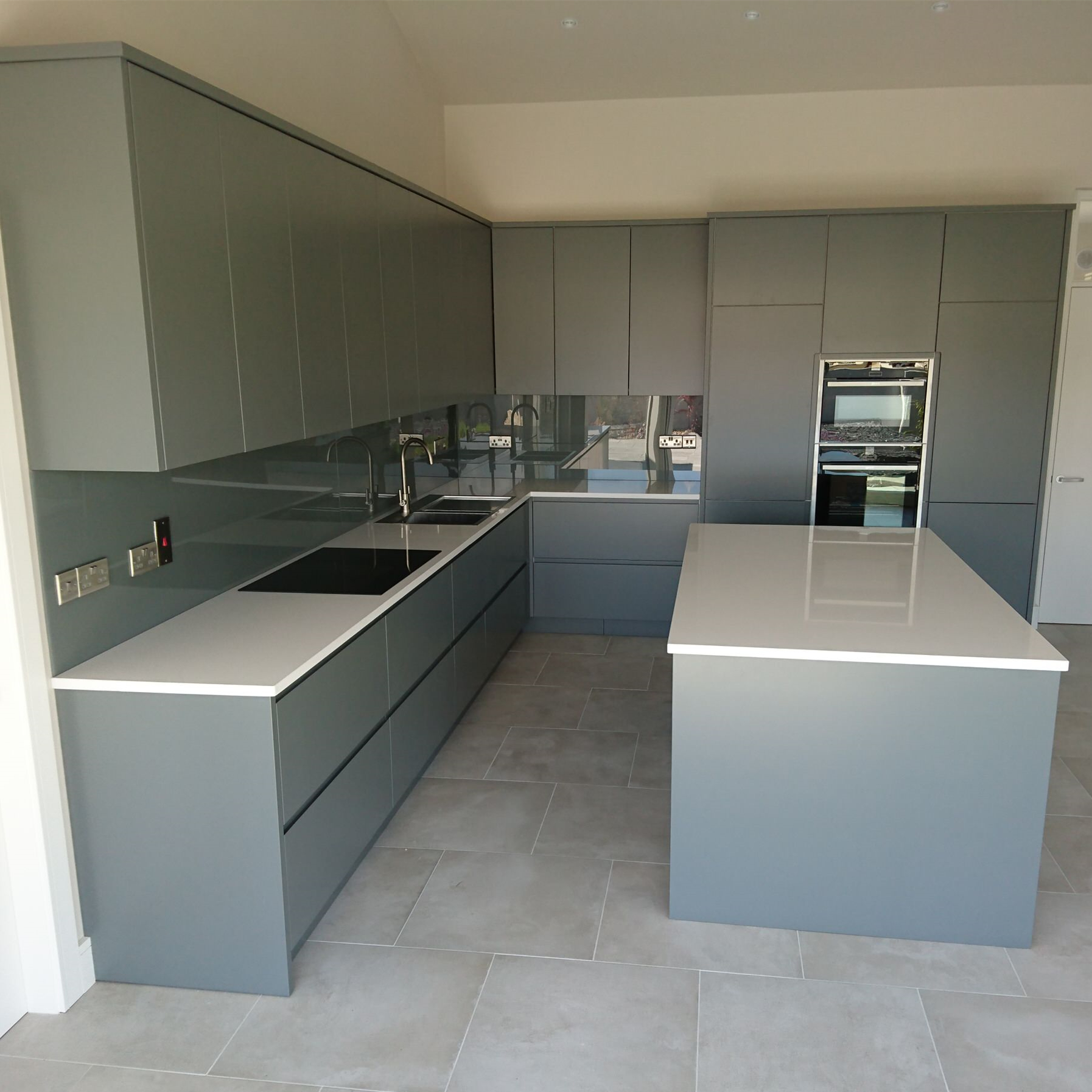 Modern Handless Lacquer Kitchen Cabinet Medium Ultra Matt Grey Images |
